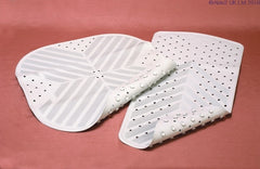 These Rubbergrip Bath Mats have a ribbed surface and suction cups for added slip resistance. The mats are self draining and fully machine washable. The mats are available in white only and in three sizes.