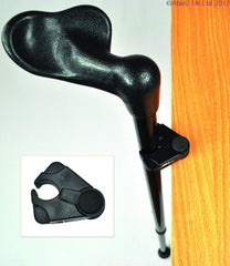 A clip-on holder balances the cane and a rubber pad helps keep the holder from sliding off the table. The Cane/Crutch Holder securely grips a cane or crutch with a 16 to 25mm diameter.