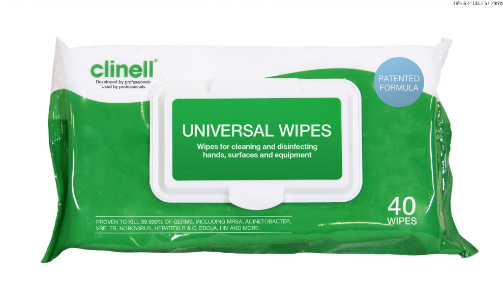 Clinell Universal Wipes provide a range of products for surface disinfection and cleaning of non-invasive medical devices. Containing a unique, patented antimicrobial formula they can be used as a detergent and disinfectant wipe - replacing the need for multiple wipes and surface cleaners. Proven to kill at least 99.999percent of germs - Clinell Universal Wipes are one of the most effective antimicrobial products on the market.This revolutionary formula contains a mix of different biocides. Each biocide has a different mechanism of action, reducing the risk of germs developing resistance.