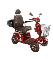 It features a delta-bar tiller with adjustment, a sliding swivel seat with headrest and padded arms as well as showerproof switches and a large basket making the Pioneer one of the most popular scooters on the market.