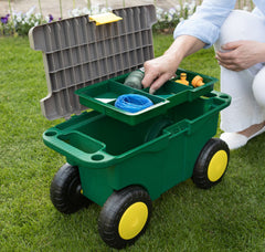 The Garden Roller Stool combines a useful tool box and convenient seat in one. It's ideal for carrying out low level chores or garden activities and reduces the need for kneeling.
