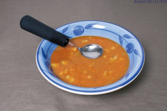 The innovative lip of the Souper Spoon is specially designed to prevent spills while moving the spoon from the plate to the mouth. Liquids and food stay on the spoon where they should be! The onepiece, stainless steel lip is easy to clean and fits in the mouth. The total length measures 180mm (7"). The Good Grips® model is ideal for persons with Alzheimers, CVA, Parkinsons disease, arthritis, or neurological impairments. Institutional dishwasher safe.